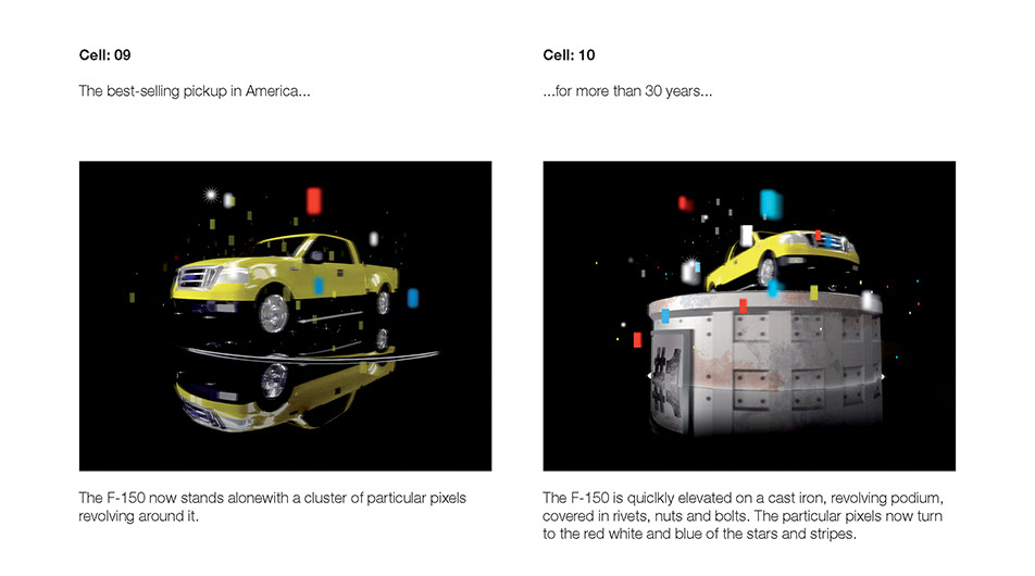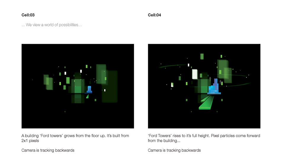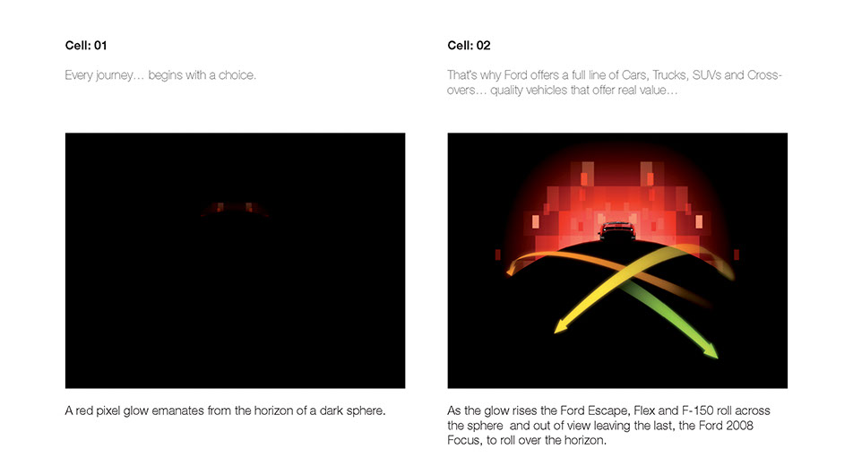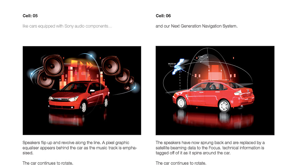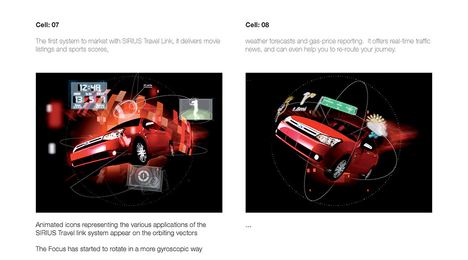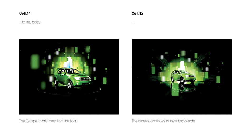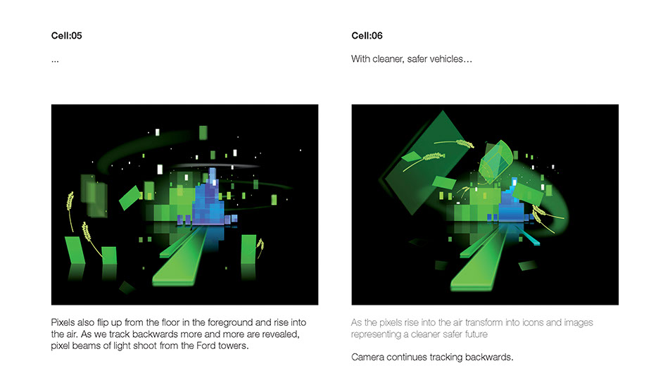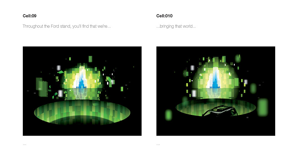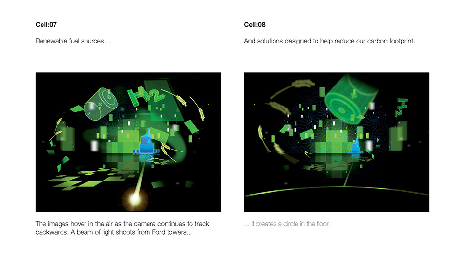 Illustration, story boarding and styleframes for Imagination's Ford 3D theatre Brand Films. These films were presented on a custom built "Peppers Ghost" 3D display, as part of the Detroit International Motor Show (NAIAS) in 2008.